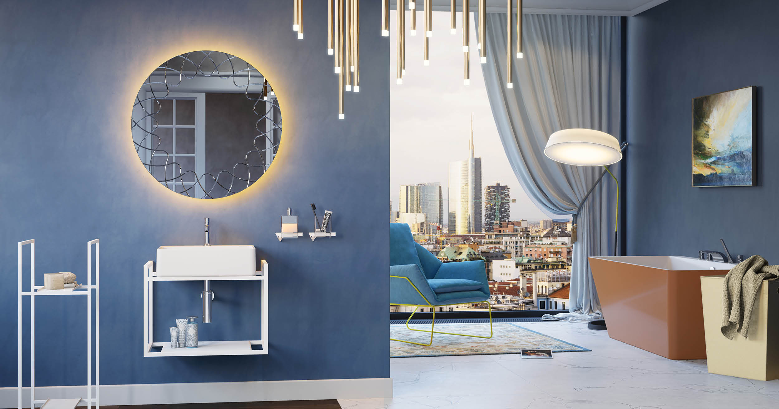 Da sempre il blu è considerato nell’armocromia, il colore della tranquillità, armonia ed eleganza. Scegliere il blu per la tua stanza da bagno, significa predisporre un ambiente che rilassi mente e corpo, perfetto per la stanza della cura personale. Arredare il bagno con queste tonalità, crea un’oasi rigenerante di freschezza e pulizia.