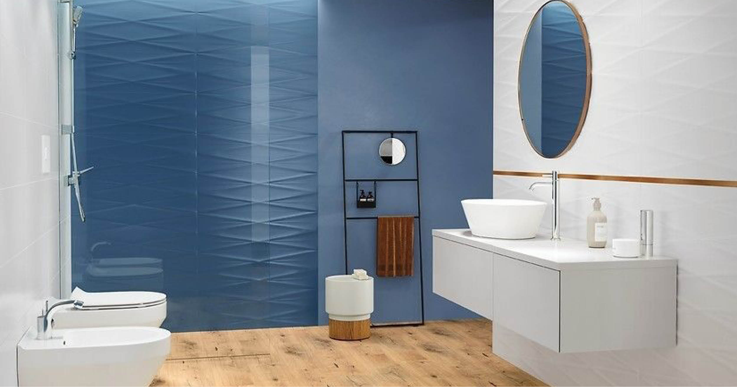 Il blu è un colore che non passa mai di moda e si adatta ai diversi stili di design, dal più classico all’industrial. Esistono talmente tante sfumature di blu che è impossibile non trovarne una adatta ai propri gusti! In un bagno blu si può giocare con fantasie, trame e abbinamenti che vanno dal tono su tono, ai neutri, fino ai contrasti più accesi.